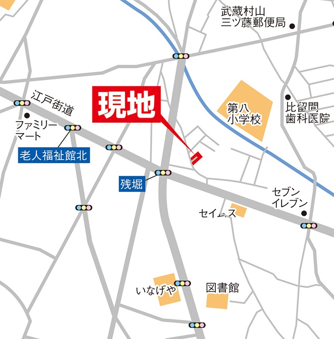 武蔵村山市立第八小学校…徒歩5分 武蔵村山市立第五中学校…徒歩13分 セブンイレブン…徒歩5分 いなげや…徒歩7分 ドラッグセイムス…徒歩8分 イオンモールむさし村山…徒歩17分 |